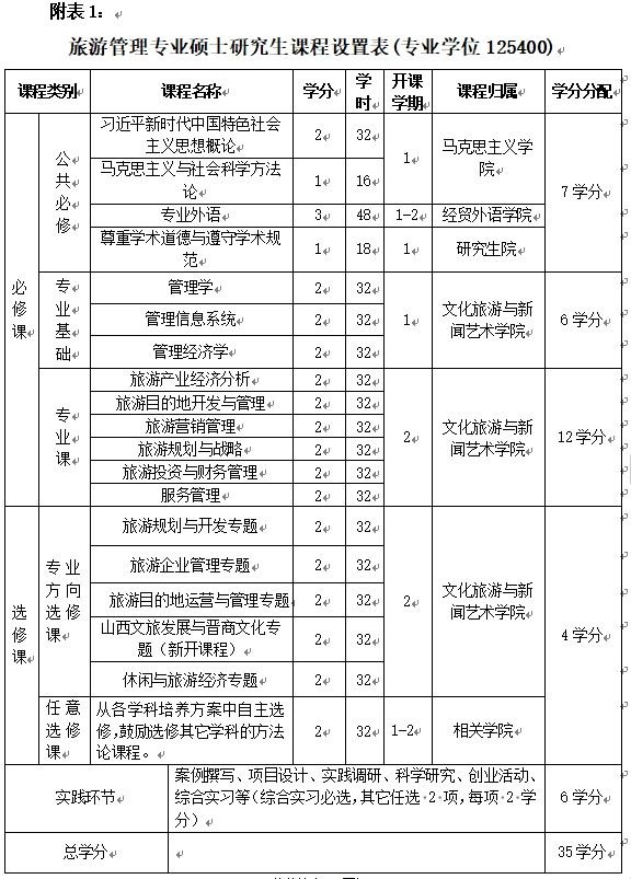 旅游管理专业硕士培养方案(专业学位125400)