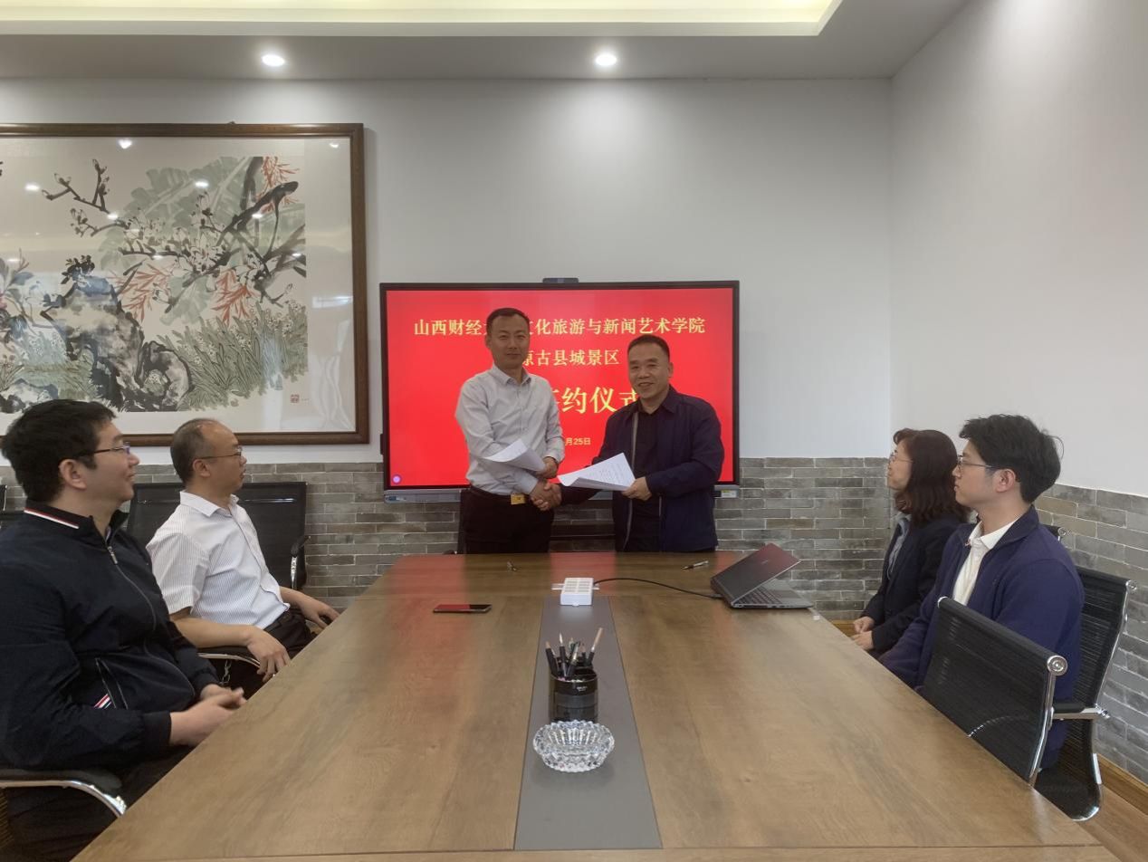 实践教学基地,开展校企深度合作。太原龙投云际文化运营管理有限公司(太原古县城景区)副总经理苏亚伟、综合部主任杜继萍等参与合作签约。