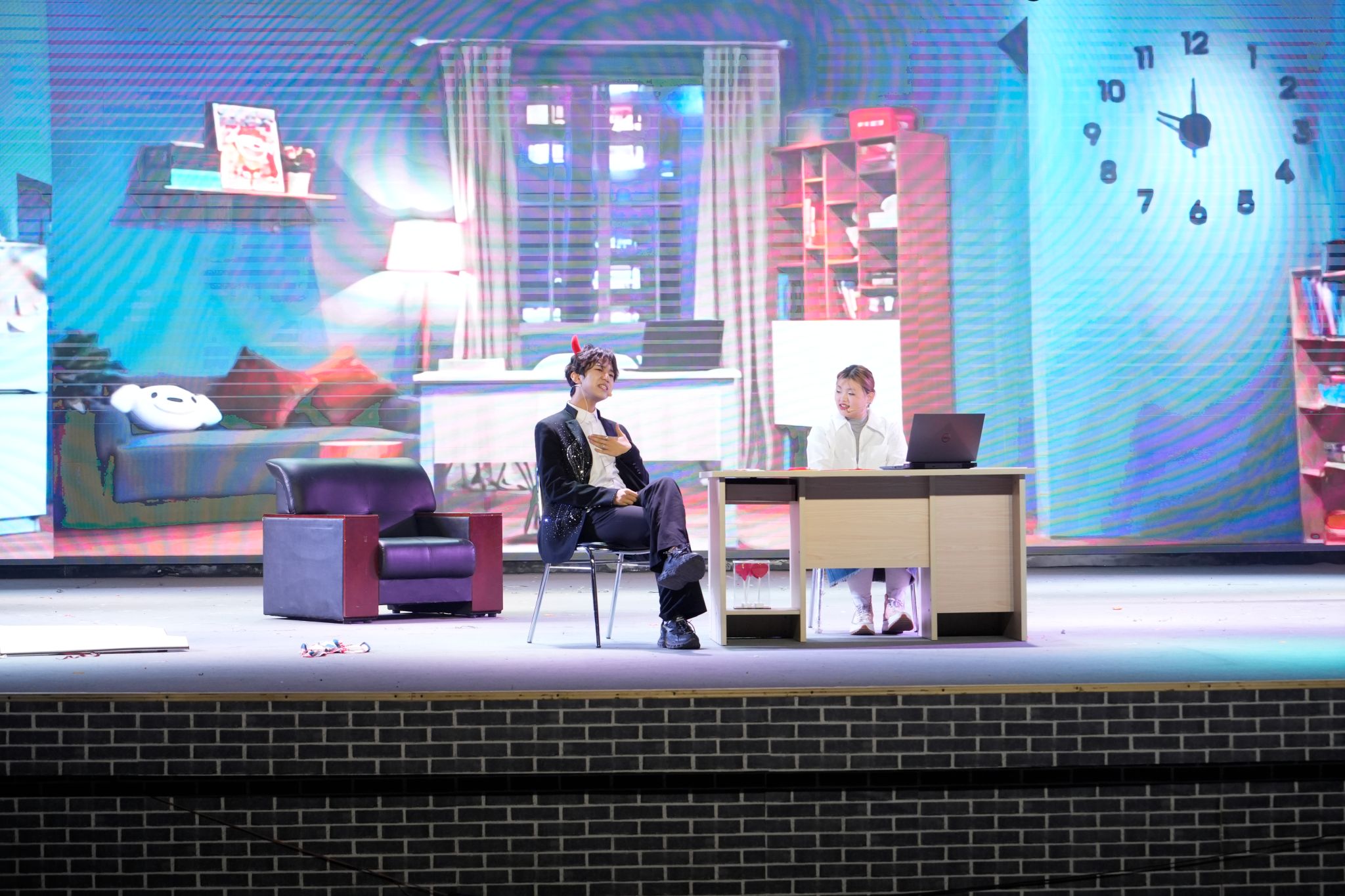 坚定文化自信,秉持开放包容,坚持守正创新的文化育人原则。说唱表演《水晶》、街舞表演《YES or YES》和西洋乐器合奏《浴火重生》呈现出跨文化差异带来的文化融合氛围。小品《时间都去哪了》以现代社会大学生被手机“绑架”的真实演绎来提醒同学们做好时间规划。小品《平行时空饭店》则以超时空意象演绎出不同选择下的人生道路,提醒我们无论结果好坏,都要坚定自己的初心。