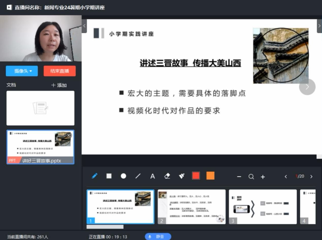 新闻教研室刘杰、魏丽娟、南瑞琴三位实践经验丰富的老师分别为学生做了《媒体实践的价值与方法论》《融媒体作品创新》《大学生创新创业大赛要点》讲座,指导学生开展暑假实习、融媒体作品创作、参加大学生创新创业大赛,并通过这些实践活动创作宣传推广山西的融媒体作品。