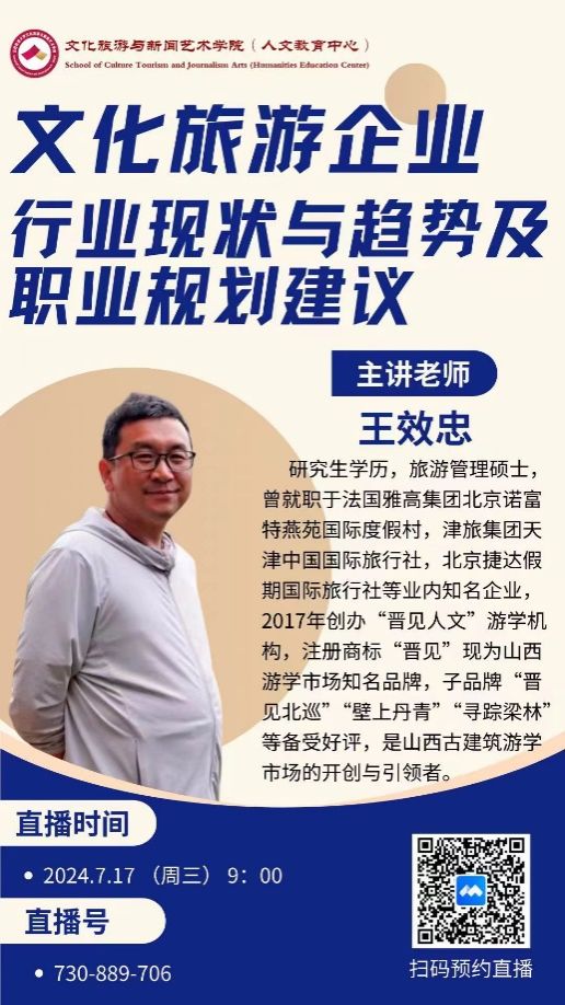 王效忠老师曾就职于法国雅高集团北京诺富特燕苑国际度假村,津旅集团天津中国国际旅行社,北京捷达假期国际旅行社等业内知名企业,并创办了“晋见人文”游学机构,有着丰富的工作经验,所以他在讲解中,便主要讲解了他的一些工作经历,并慷慨的教授了一些工作经验,这些与专业相关的一手资料,是学生们很难在书本中发掘的。常年奔波奋斗在一线的人,对整个产业的把控往往最具时效性以及精准性。