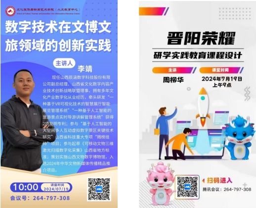李靖老师牵头研发“一种基于VR可视化技术的智慧展厅智能展览管理系统”“一种基于人工智能的旅游景点实时导游讲解管理系统”获得两项发明专利。李靖老师也就此方面分享了他在VR可视化技术与文旅结合所取得的一些成果,让学生大饱眼福。