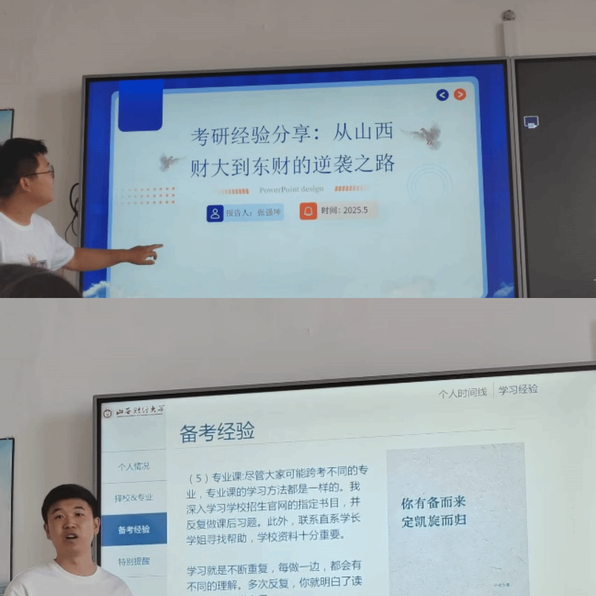 为东北财经大学,从院校选择、备考经验,备考过程,复试准备等方面进行了细致分享。他强调了如何有效地备考,精心准备面试中展现自信与专业潜力的关键作用。“平台很重要,但更重要的是明确自己读研的目标,并为之付出匹配的努力。”