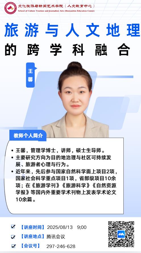 旅游管理专业以线上腾讯会议形式,开展旅游与人文地理的跨学科融合的专题教学活动,主讲人为山西大学王馨老师,为2022级、2023级、2024级学生剖析旅游与人文地理的跨学科融合。