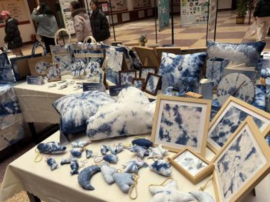 2023级视觉传达设计专业学生亲手制作和设计,包括《山西文旅调研与考察》专业课程综合实践展板,黎侯虎和乔氏珐琅传统手工艺品以及小学期实践扎染创作。