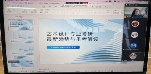 视觉传达设计专业2024级、2025级全体学生,参加了谭静老师线上主持的“艺术设计专业考研最新趋势与备考解读”分享会。为帮助专业学子尽早了解艺术类研究生考试改革趋势、明晰择校方向、掌握高效备考策略,谭老师从多方面做出了详细指导和建议。