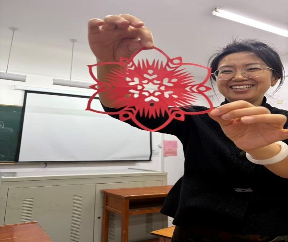 红纸轻折,剪刀翻飞,一幅幅寓意吉祥的团花、灵动精巧的窗花在指尖绽放。为让青年学子近距离触摸非遗魅力,夯实文化传承根基,近日,23级汉语国际教育专业以“学习剪纸技艺,感知非遗文化魅力”为主题的非遗传承实践活动在博学楼605教室温情启幕。活动通过“理论讲解+技法实操+创意创作”的多元形式,让同学们在剪刻之间读懂传统,在实践之中践行传承。