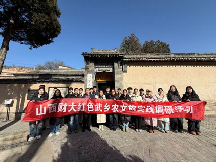 于2026年1月16日组织师生实践团队赴山西省武乡县,以八路军太行纪念馆、王家峪八路军旧址、砖壁村八路军总部旧址为核心点位,开展了为期一天的“红色旅游+研学”融合发展主题调研。团队通过实地走访、村民访谈、倾听讲解等多元方式,在历史现场重温抗战岁月,感悟太行精神的时代伟力,沉浸式感悟太行精神,为革命老区农文旅融合发展注入青年智慧,贡献实践方案。