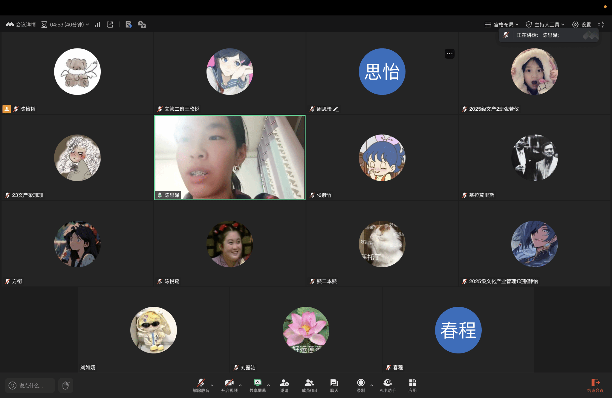 在此基础上,李旭鹏导师小组组织学生开展专题研讨,引导同学们对讲座内容进行二次梳理与深化理解。研讨中,陈思泽、车彦琦同学结合“文化是创意的土壤”“行动重于完美”等核心观点,围绕文化产业从“单一技能导向”向“综合能力导向”转变的趋势展开交流,让大家深刻认识到,将专业知识与实践深度结合、主动培养资源整合能力以及将创意概念落地为具体产品与标准化流程,是未来立足行业的关键与具体实践的核心要求,进一步明确了自身专业学习与实践能力培养的重点方向。